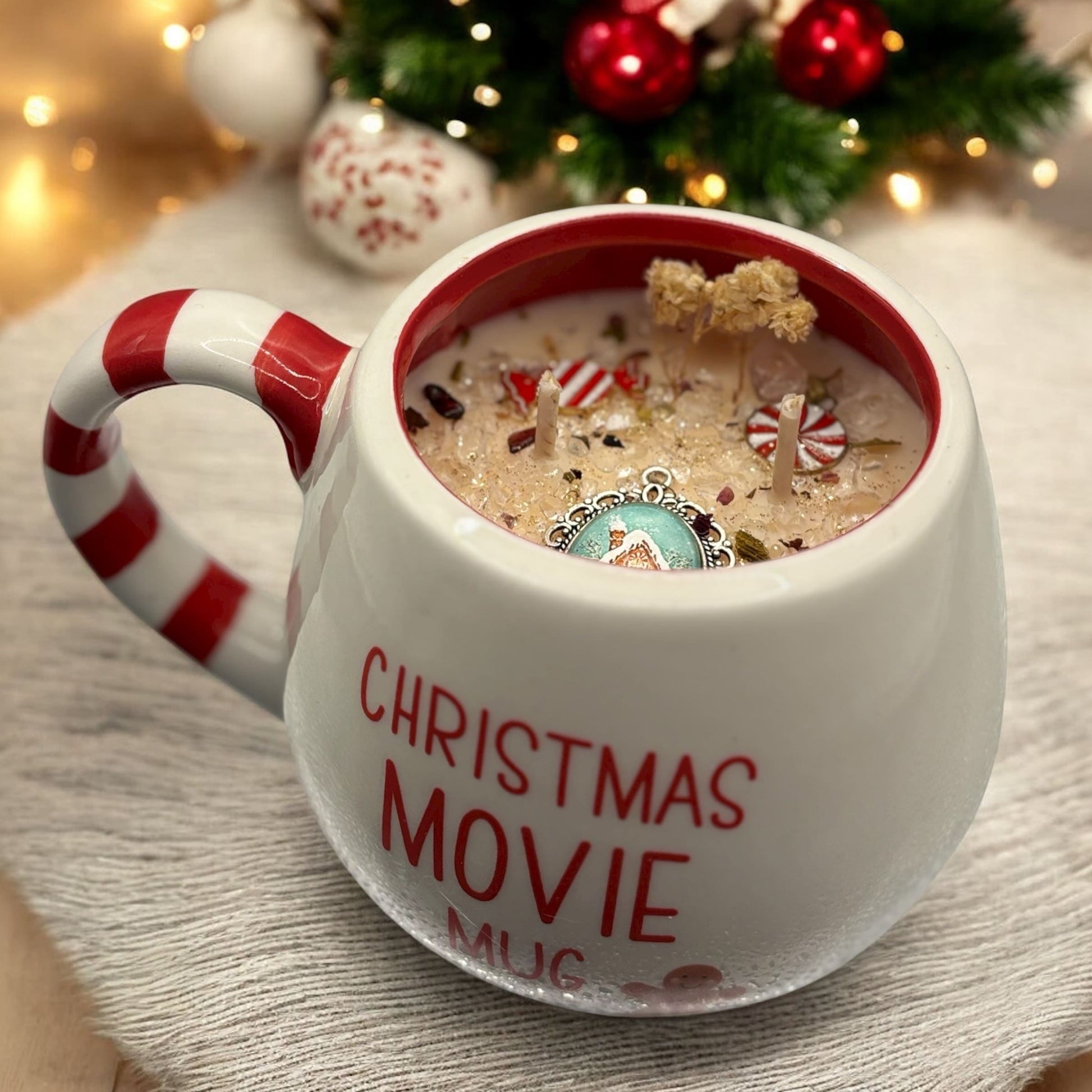 Coulée dans une grande tasse blanche et rouge « Christmas Movie Mug », elle vous plonge dans l’esprit cocooning des fêtes. Un design unique, réutilisable après la combustion pour prolonger la magie : thé, chocolat chaud ou café trouveront leur place dans ce mug festif.