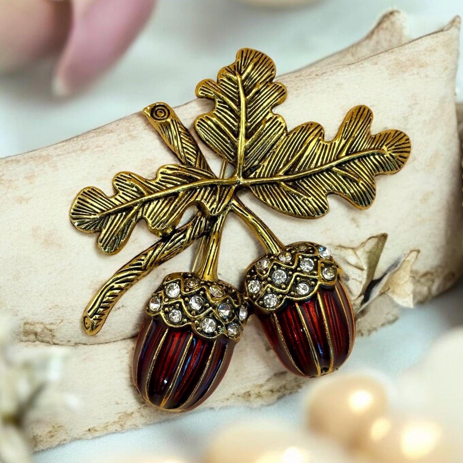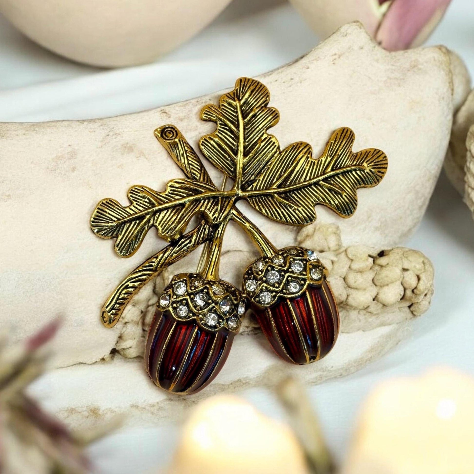 La monture dorée, aux nervures délicates des feuilles de chêne, offre un contraste chaleureux et lumineux. Épinglez cette broche sur le revers d'une veste en velours, sur un châle en soie moirée, ou laissez-la illuminer l'encolure d'une robe aux teintes poudrées. Elle apportera une note de grâce classique et un soupçon de nostalgie élégante à votre parure.