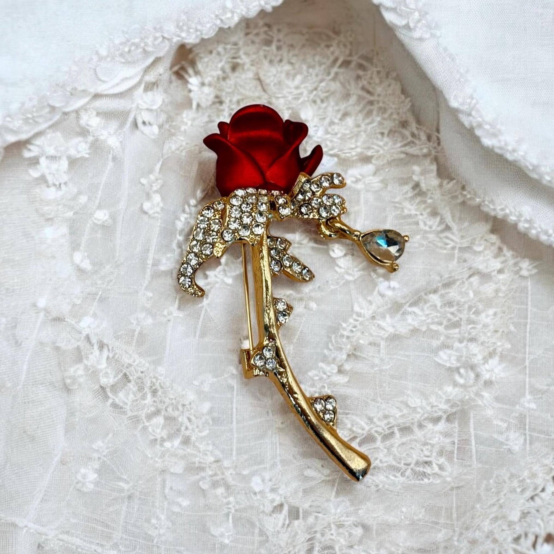 Chaque pièce est conçue avec soin dans notre atelier, pour sublimer une tenue avec une touche romantique et vintage. À porter sur un col ou une robe, cette broche devient un véritable bijou de caractère, où le rouge intense de la rose dialogue avec la brillance subtile des strass.
