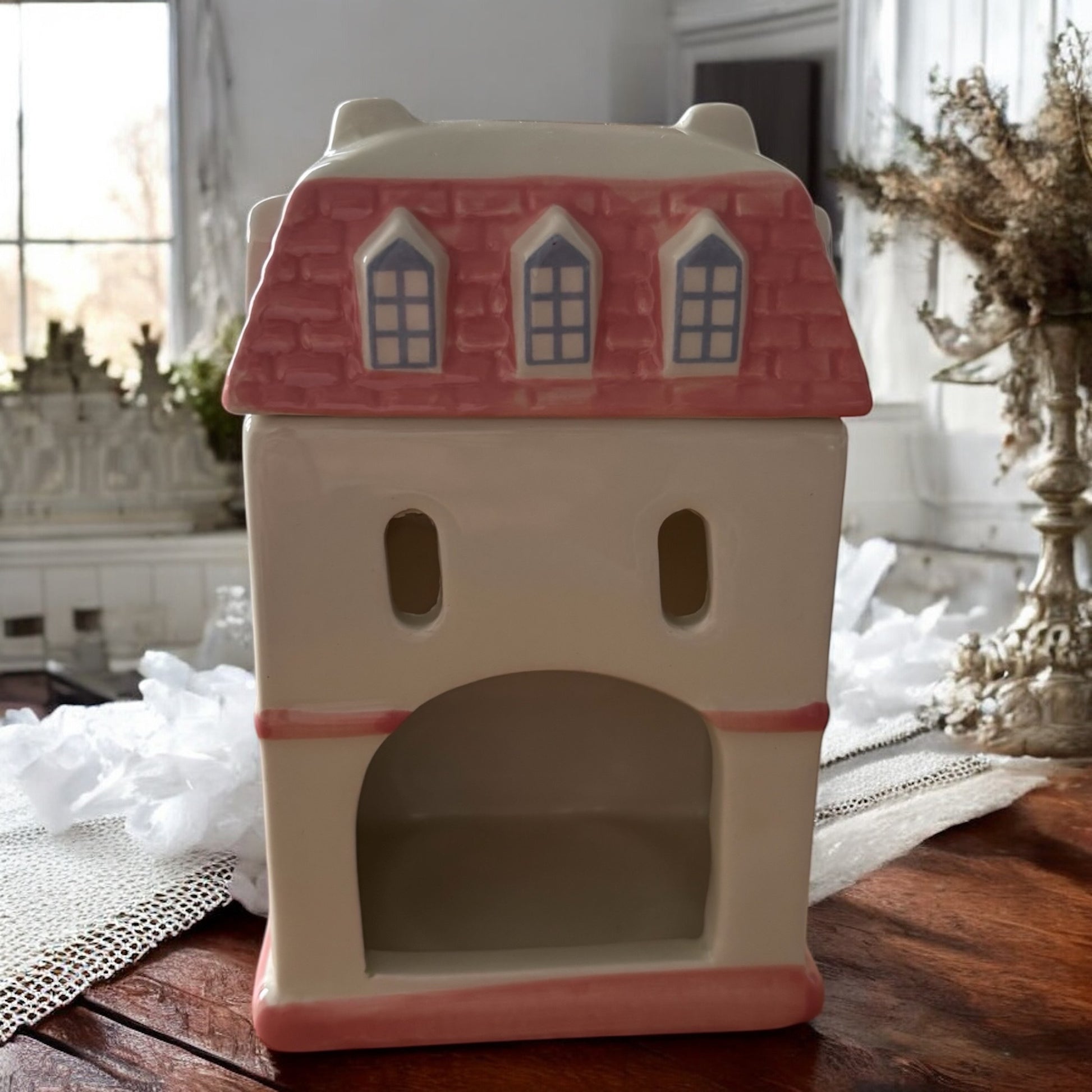 Apportez une touche de douceur et de charme à votre intérieur avec ce brûleur à fondants en céramique en forme de jolie maison. Ses tons pastel et ses fenêtres élégantes lui donnent un esprit romantique et chaleureux, parfait pour une décoration cosy et raffinée.