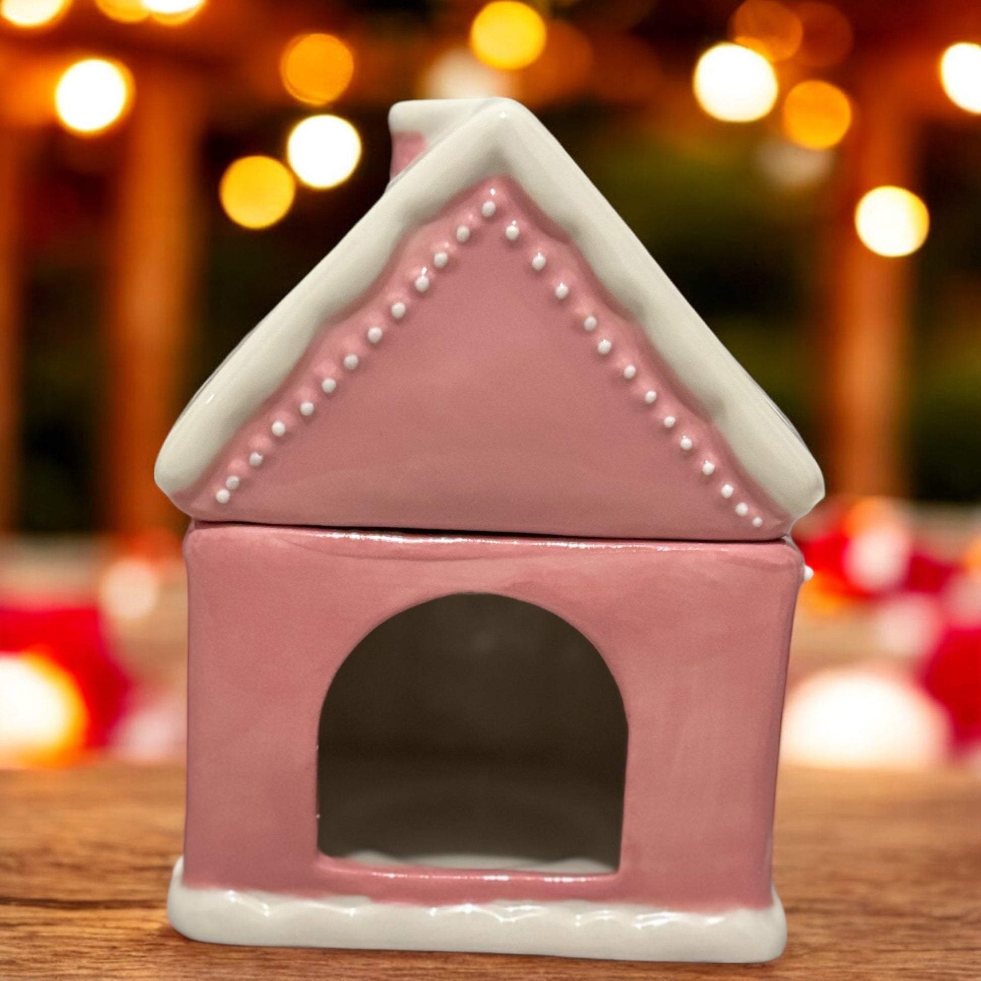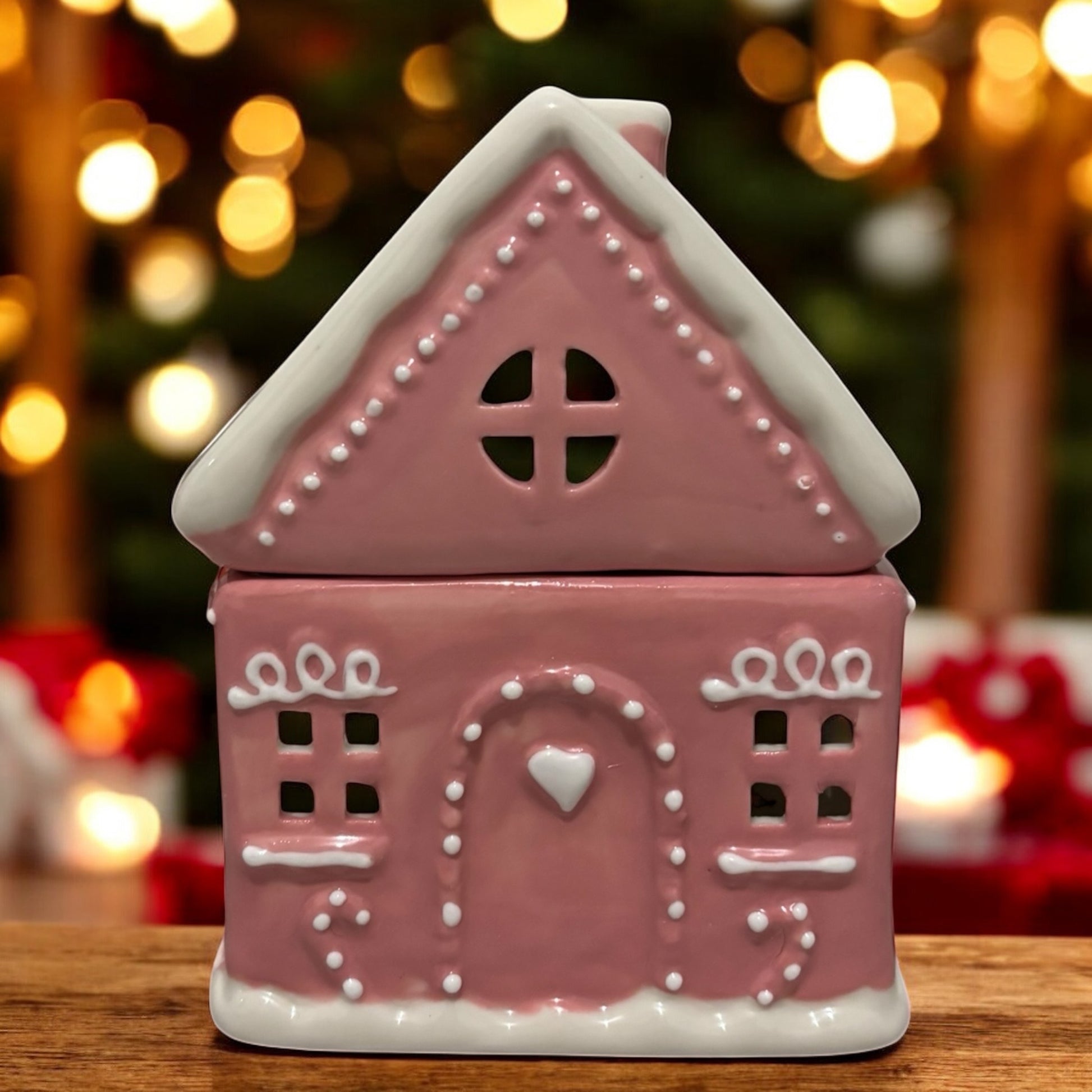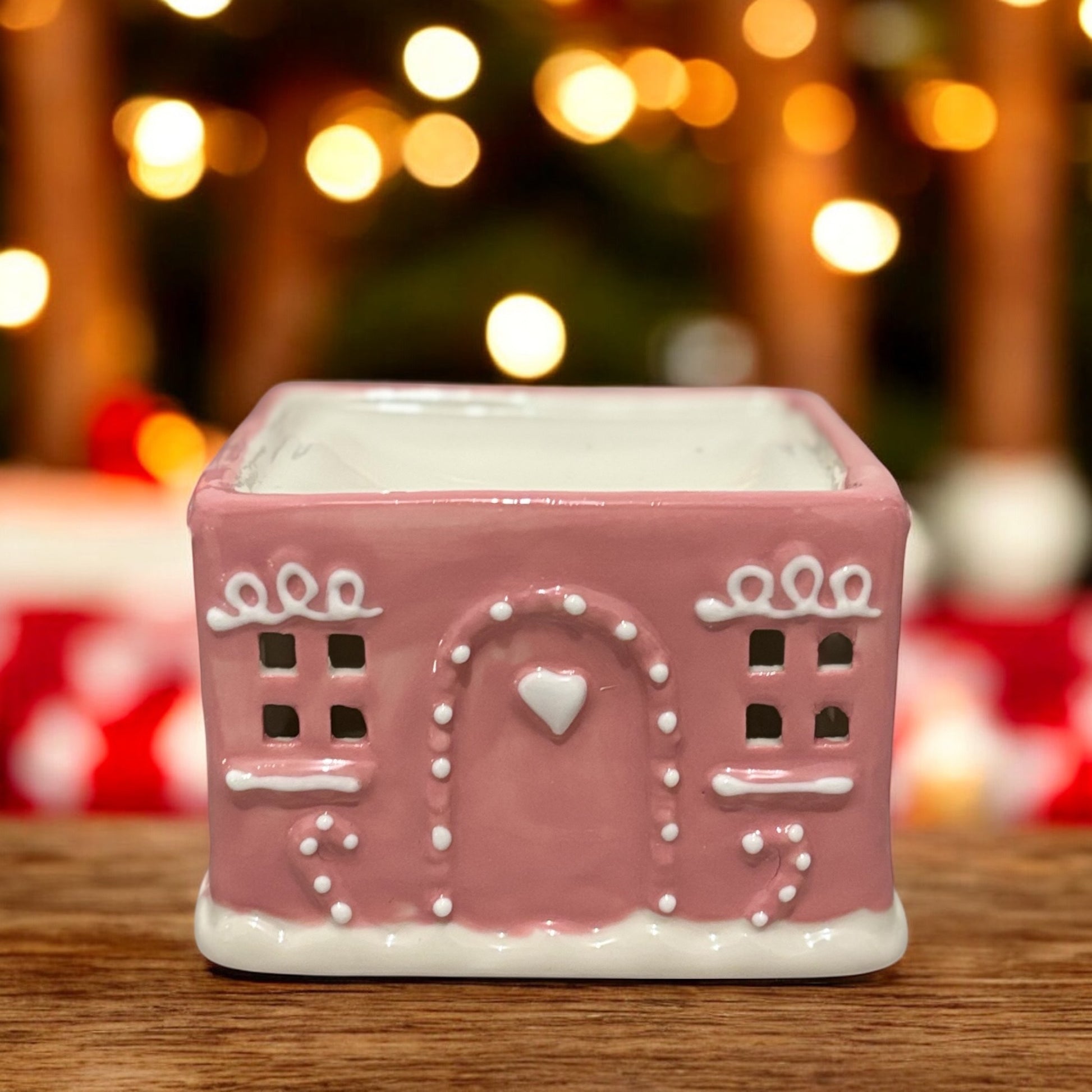 Apportez une touche de féérie à votre intérieur avec ce brûleur à fondants en céramique, inspiré des adorables maisons en pain d’épices. Sa douce couleur rose poudré et ses finitions blanches évoquent la magie de Noël et créent instantanément une ambiance chaleureuse et gourmande.