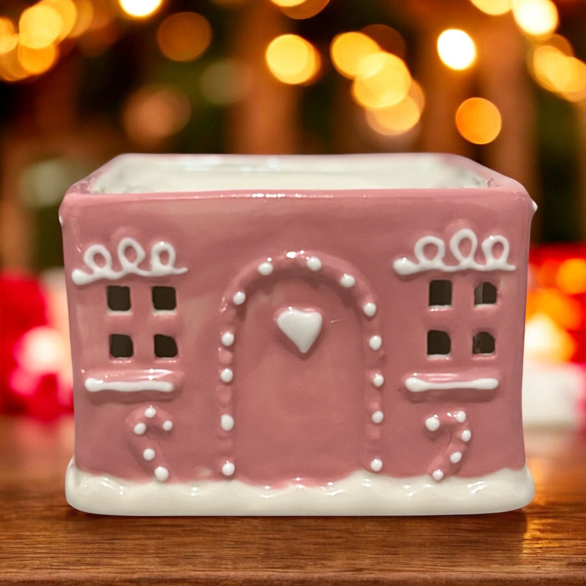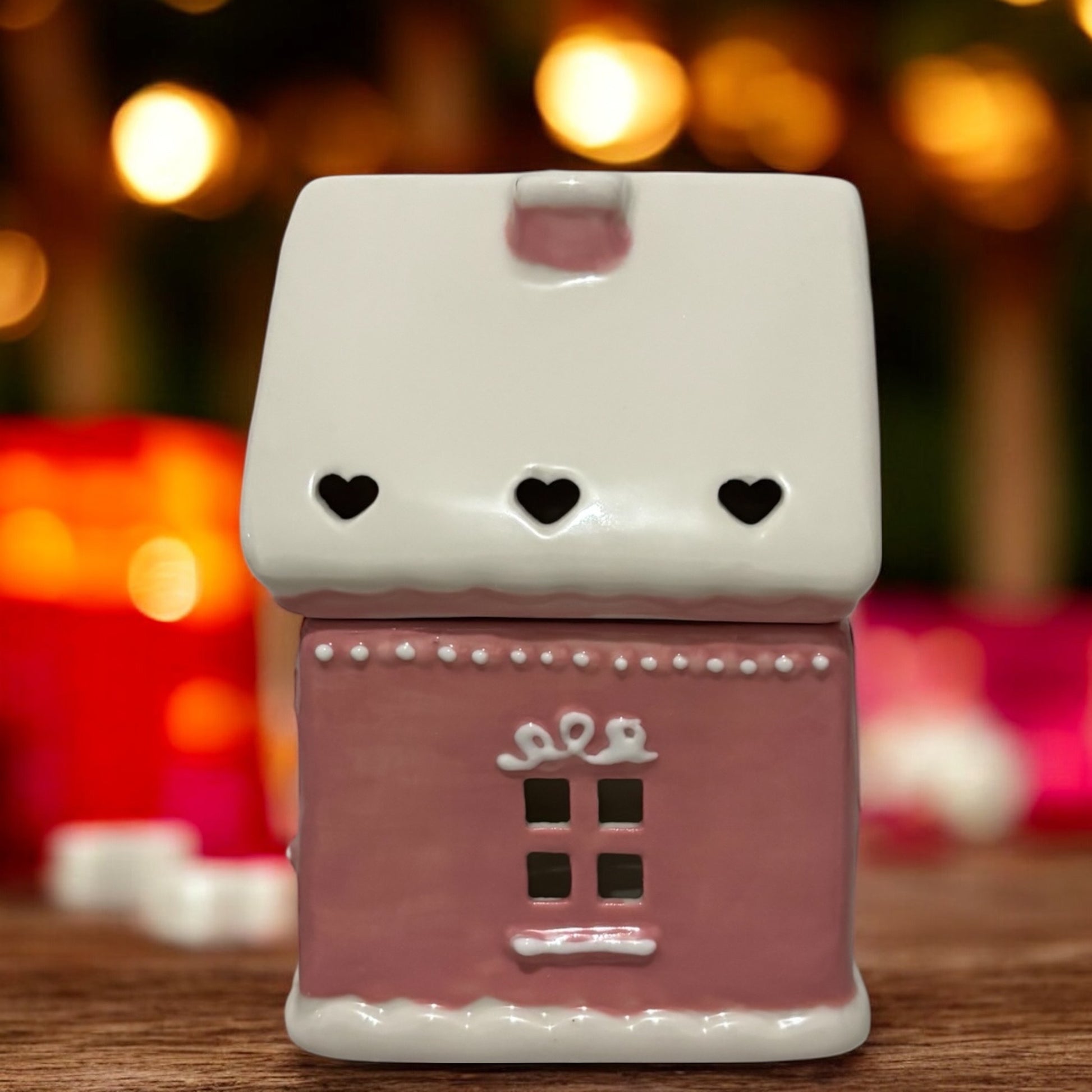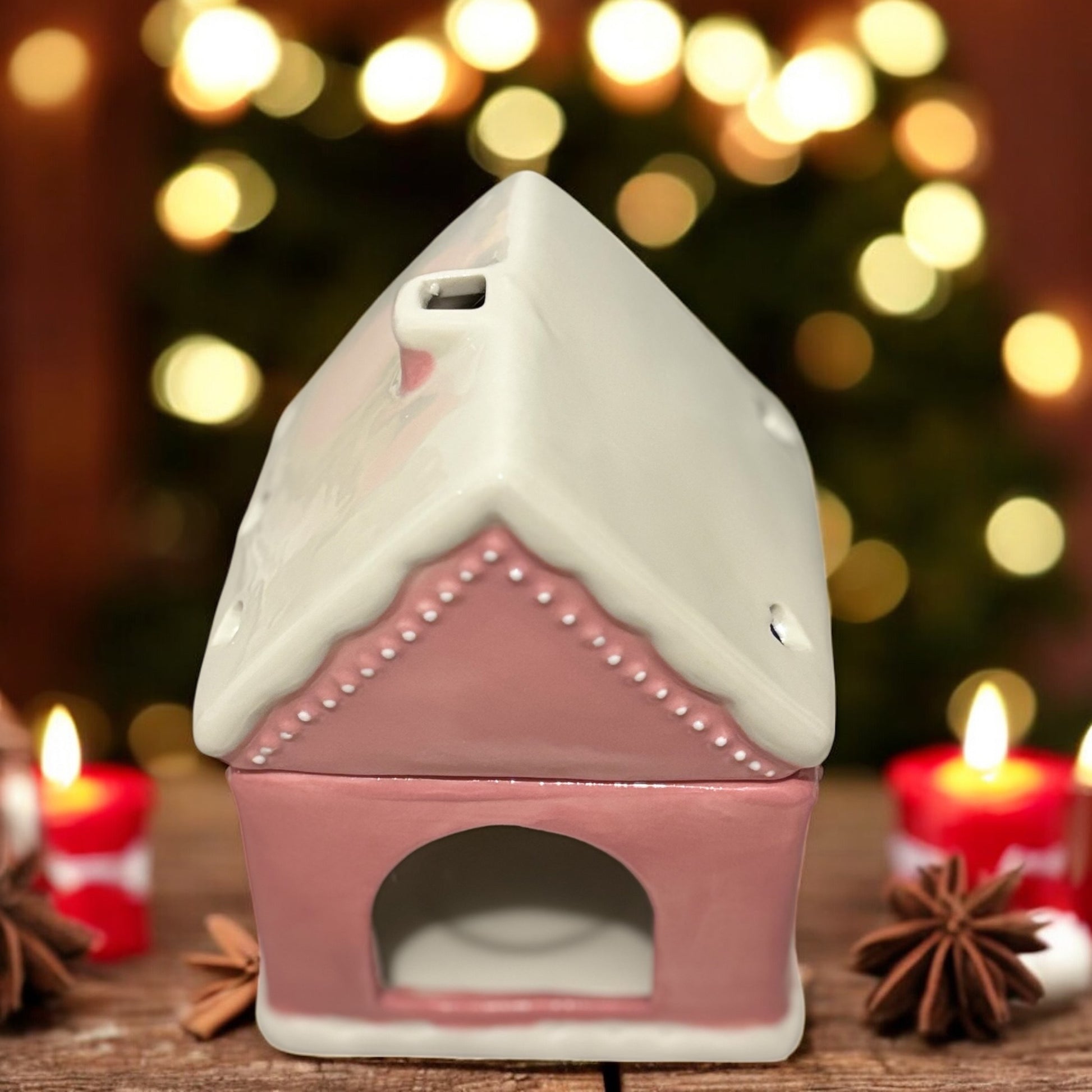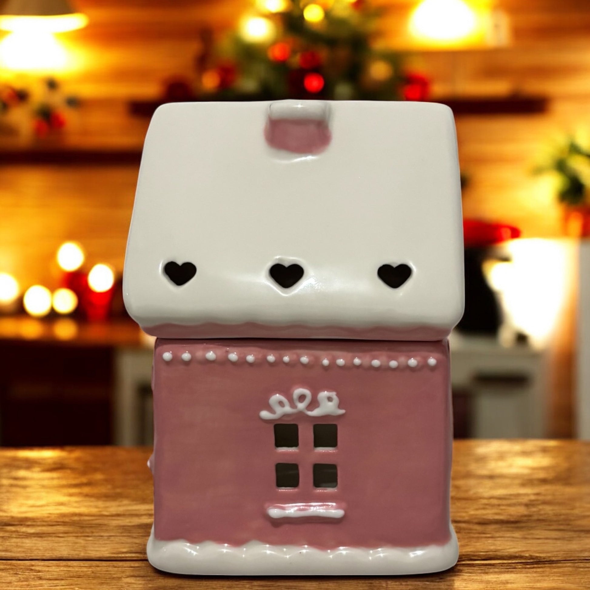 Apportez une touche de féérie à votre intérieur avec ce brûleur à fondants en céramique, inspiré des adorables maisons en pain d’épices. Sa douce couleur rose poudré et ses finitions blanches évoquent la magie de Noël et créent instantanément une ambiance chaleureuse et gourmande.
