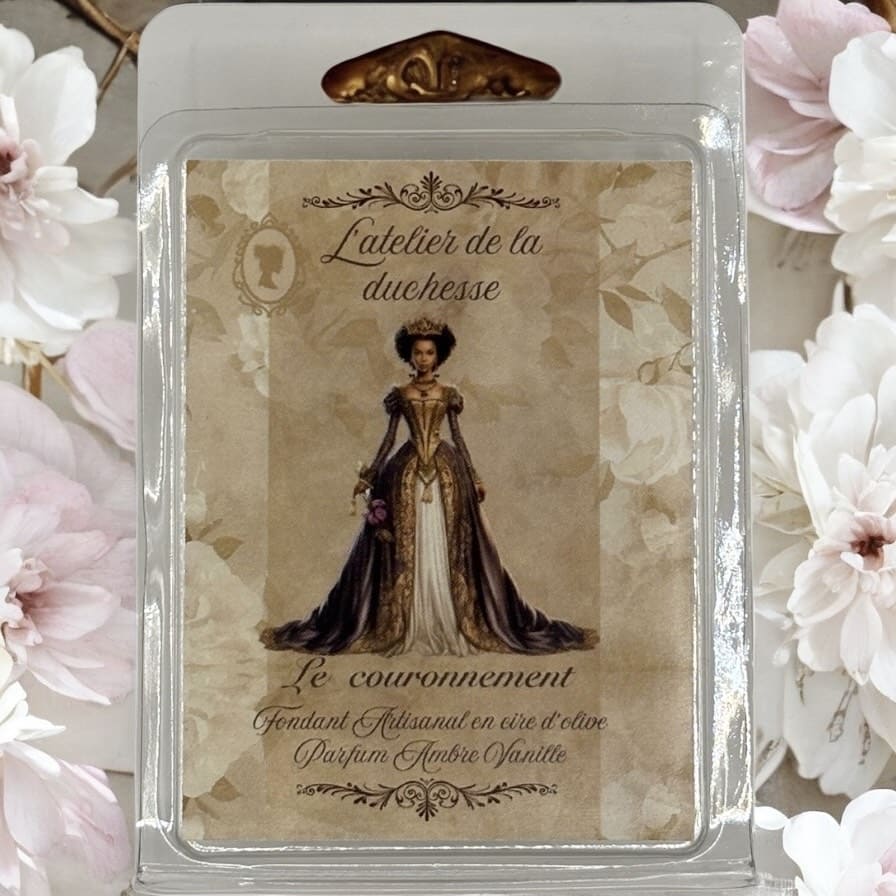 Le Couronnement vous transporte au cœur d’un palais où le temps semble suspendu, là où les murmures de la cour se mêlent au crépitement discret des chandeliers. Ce fondant, véritable joyau olfactif, dévoile une vanille ambrée chaleureuse, entourée d’un sillage oriental, enveloppant et profondément raffiné. ✨